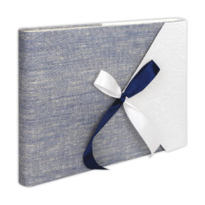 Album Busta 8, album fotografico blu e bianco per foto da incollare, con pagine interne in cartoncino bianco e pagine protettive in carta pergamena, copertina in carta di riso e cotone, con fiocco decorativo in tessuto. Album da raccolta con 30 pagine, per custodire i tuoi ricordi e le tue foto preferite.COD: GH248 -