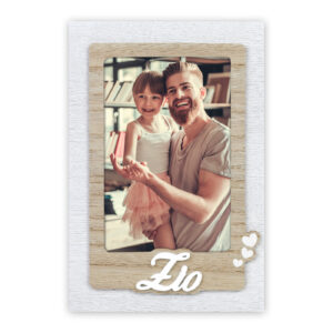 Cornice in legno, colore bianco con scritta ZIO a rilievo e decoro a forma di cuore.