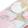 Cornice Eolo Pink in legno, colore naturale, con decorazione dipinte e a rilievo in 3D a forma di cicogna, scritta Baby colore argento, da tavolo, ideale per celebrare la nascita, adatta ad una bambina, a tema baby.