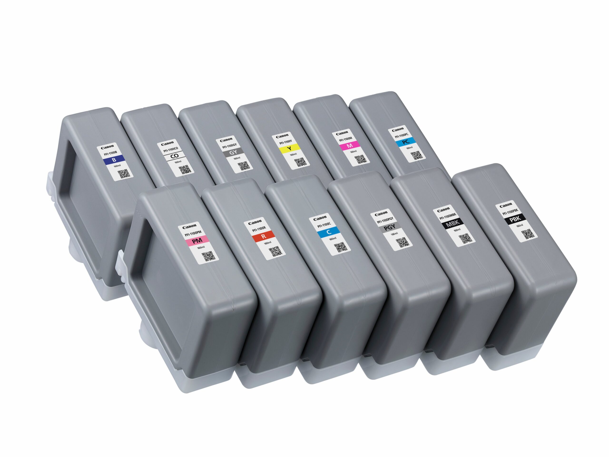 | colore | PFI-1100 B Blue, PFI-1100 C Cyan, PFI-1100 CO, PFI-1100 GY Grey, PFI-1100 M Magenta, PFI-1100 MBK Matte Black, PFI-1100 PBK Photo Black, PFI-1100 PC Photo Cyan, PFI-1100 PGY Photo Grey, PFI-1100 PM Photo Magenta, PFI-1100 R Red, PFI-1100 Y Yellow |